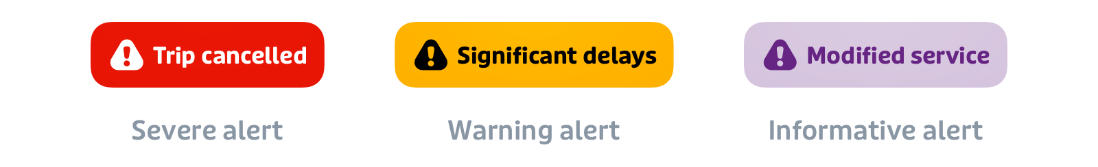 | Accessibility | Warning for users with step-free settings, hidden for others | Accessibility alerts affect the trip planner for/are only visible to users who have step-free access enabled. |