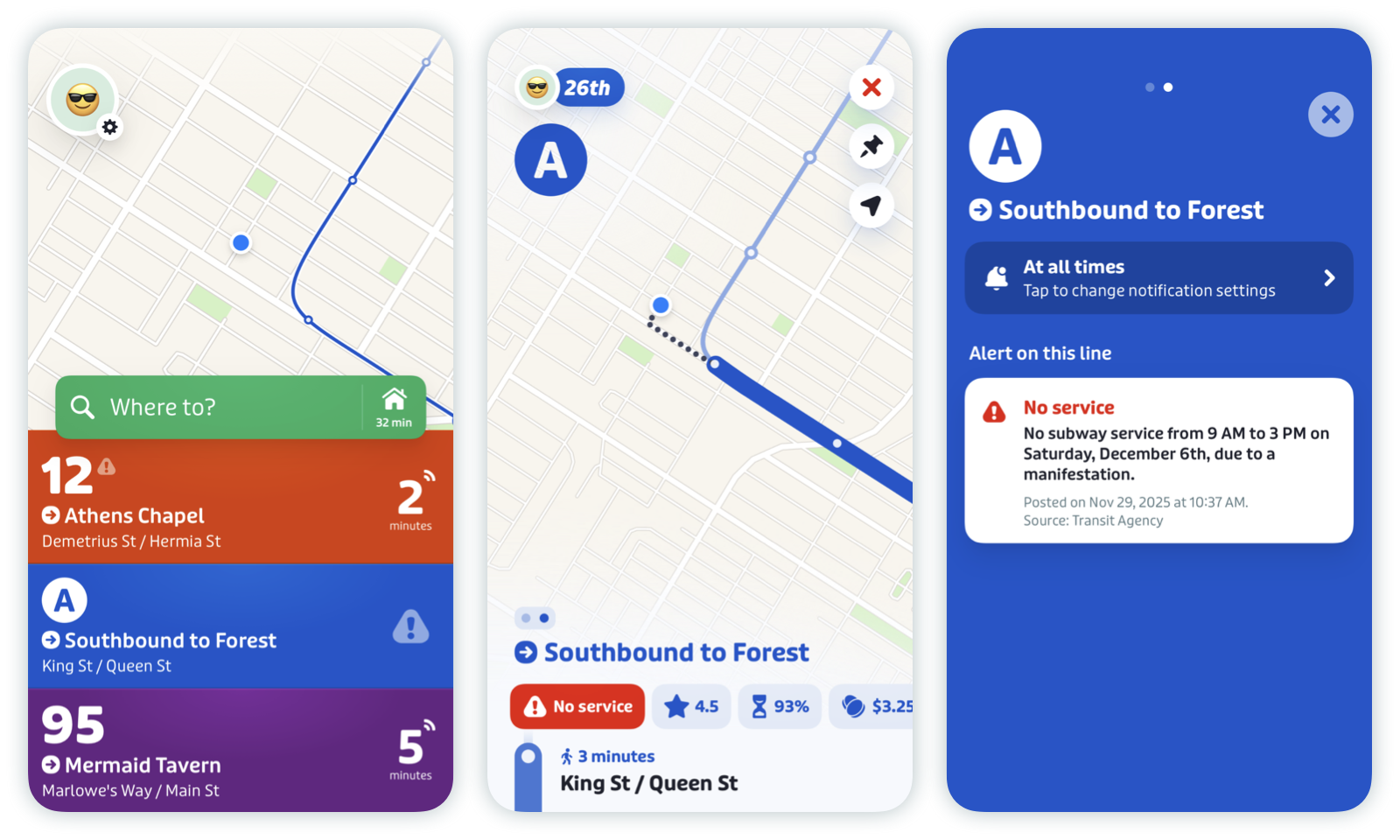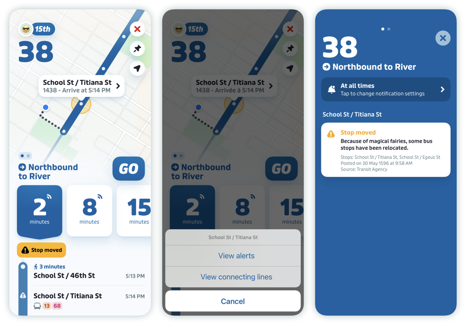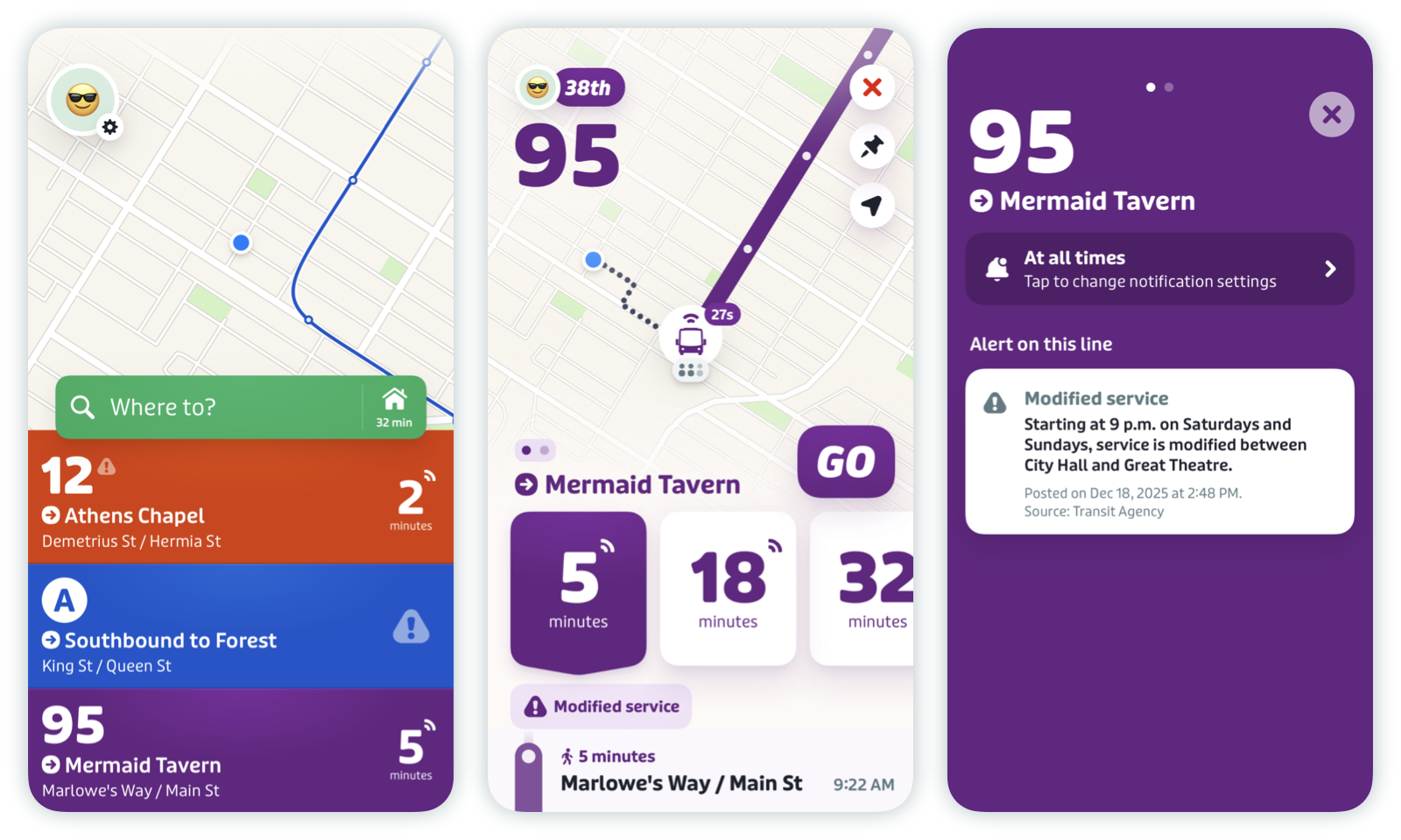 - How service alerts are displayed in Transit