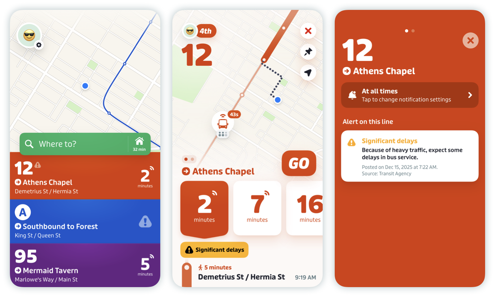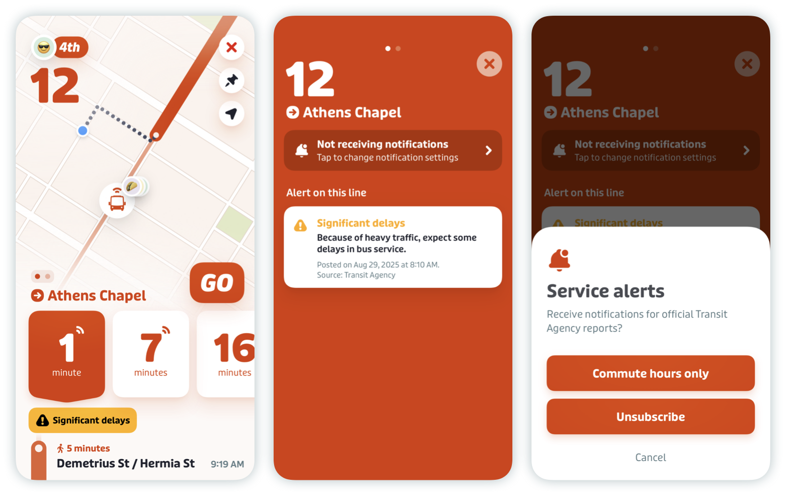 If there’s an active alert on a particular route, riders can also tap on the alert banner and then “Tap to change notification settings” to set up service alerts.