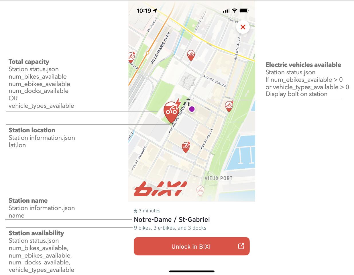 Below are images of how various GBFS fields are used within Transit. This document aims to assist data producers in understanding how their data feed will appear within the app.