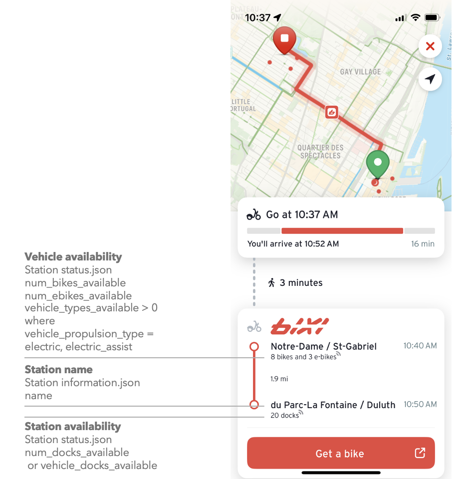 How Transit displays GBFS data