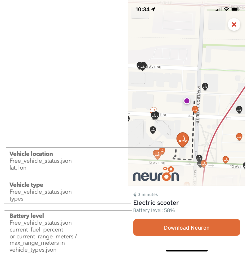 Example feed: Neuron dockless scooters in Calgary, Alberta