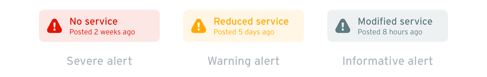 - Providing a comprehensive service alerts feed allows riders to adapt to incidents that might affect their trip. Knowing about stop closures, detoured routes, cancelled service, and significant delays in advance can save riders time and frustration.